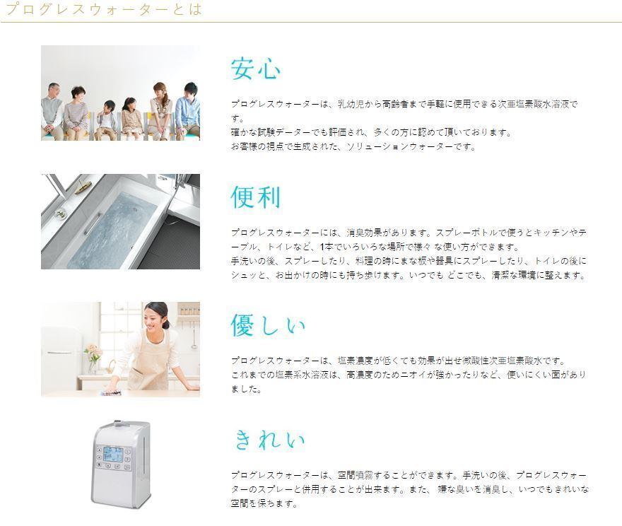 プログレスウォーターは、水と環境をソリューションするプログレス株式会社によって開発された、新しい除菌・消臭用の水溶液です。
