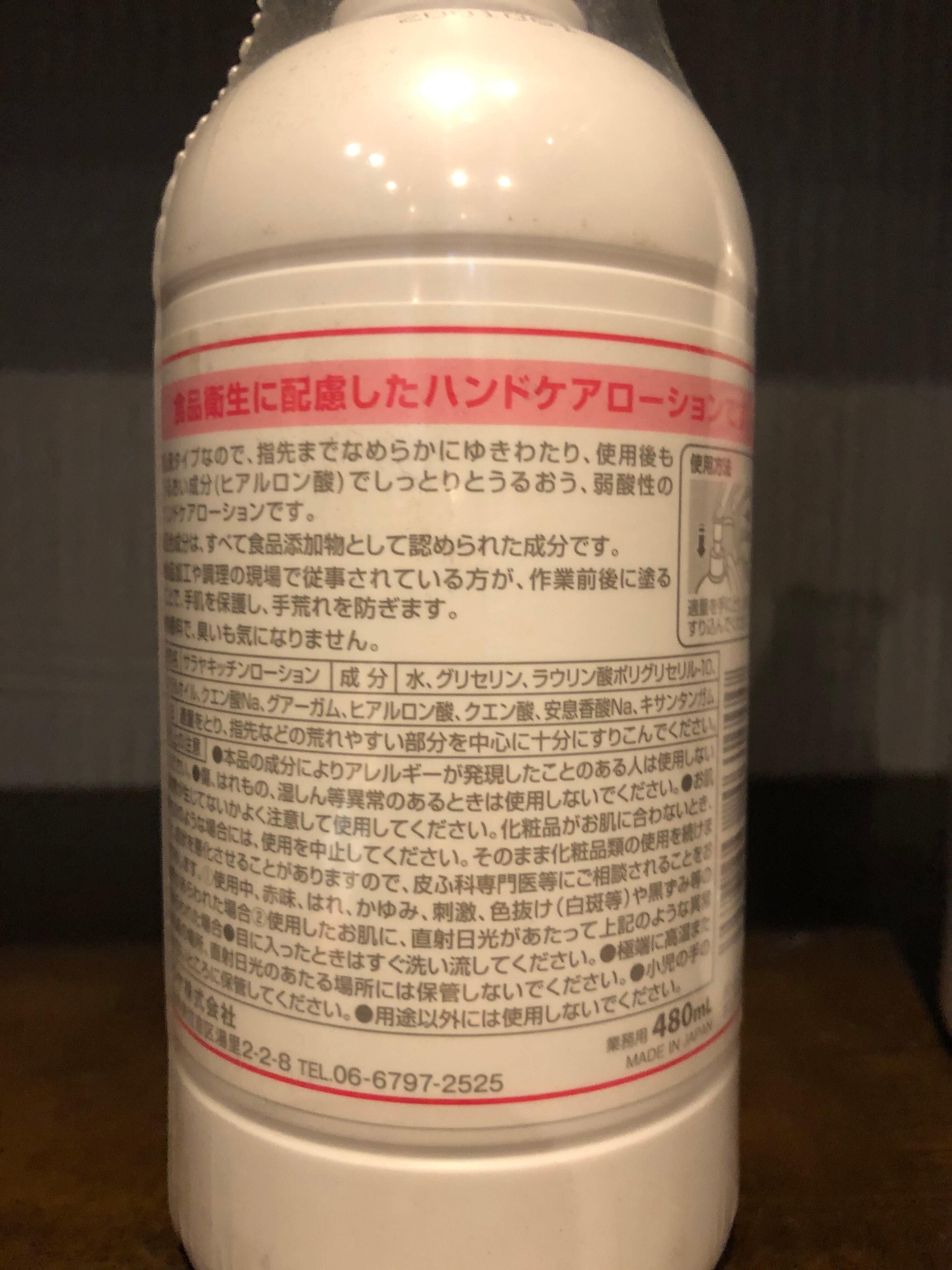 食品を取扱う方の手肌を保護し、手荒れを防ぎます。食品を取扱う方に最適なハンド保湿ローションです。
